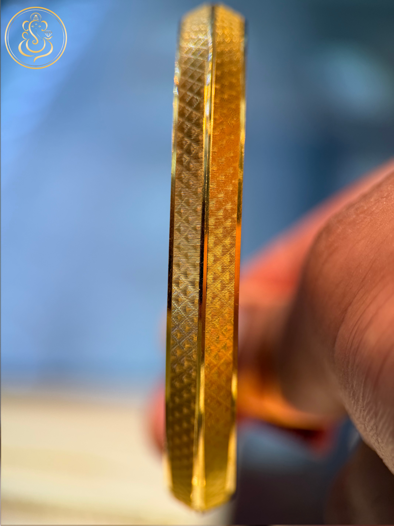 Bold and expertly crafted, this 22KT Gold Men’s Kara features precision CNC machine cutting that creates a highly reflective finish, enhancing brilliance and visual depth. The sharp, clean cuts reflect light beautifully, giving the kara a modern, premium look while preserving its traditional significance.