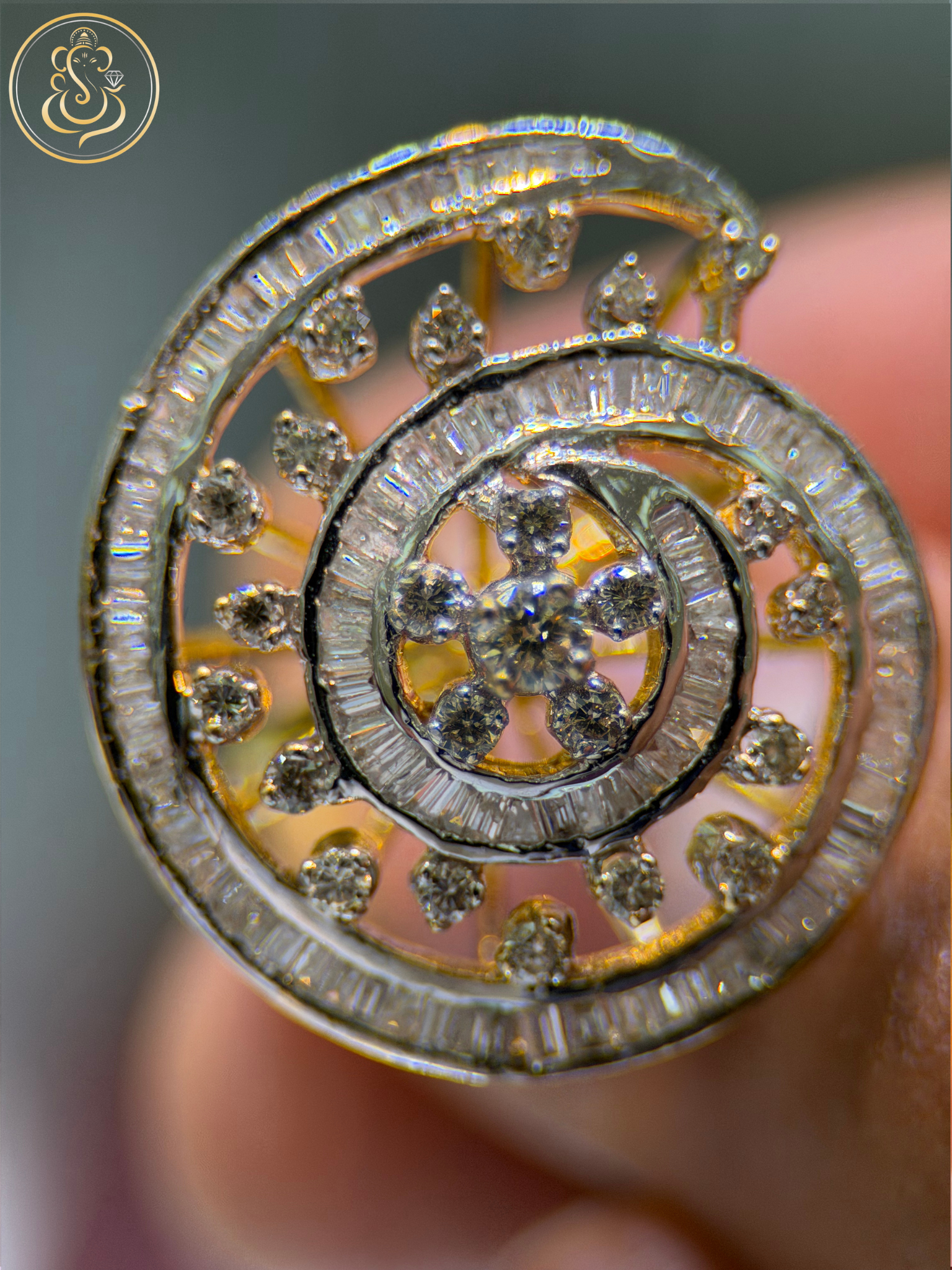 A captivating spiral design that reflects movement, brilliance, and fine craftsmanship.